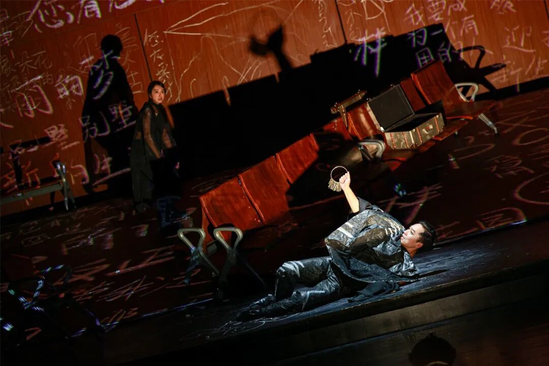 观众席也成为了表演区的拓展,演员穿梭其间,并以影像捕捉与扑克魔术等方式进行场内互动,让观众参与到演出之中。“我们有两个努力的方向,一方面希望观众能够看懂契诃夫,体会到《樱桃园》的深度;另一方面希望在形式上有所创新,让传统作品拥有新的戏剧内核。”副导演朱少鹏表示,希望通过这种舞台上下的共创,与观众形成更为充分的共鸣。