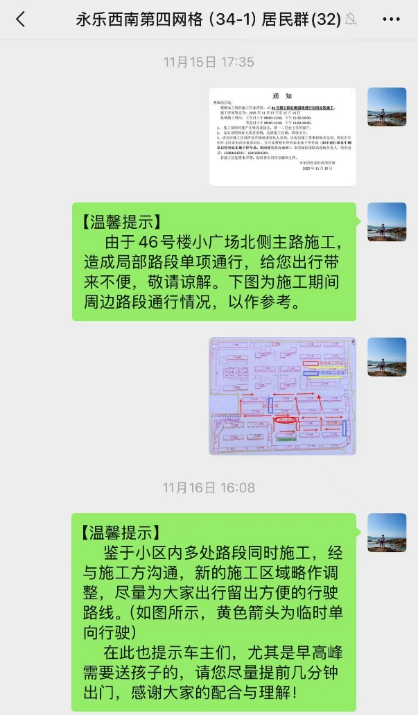 社区网格群为居民提供出行贴士(永乐西南社区 供图)