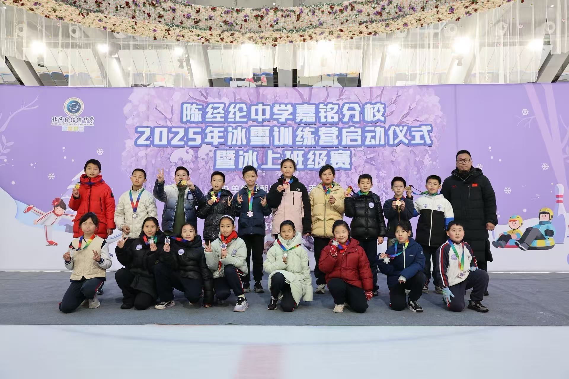 近日,陈经纶中学嘉铭分校2025年冰雪训练营启动仪式暨冰上班级赛在国家游泳中心“冰立方”冰上运动中心举行。活动由朝阳区教育委员会主办,朝阳区青少年活动中心与陈经纶中学嘉铭分校联合承办,全校21个班级的200余名学生参加了本次活动。