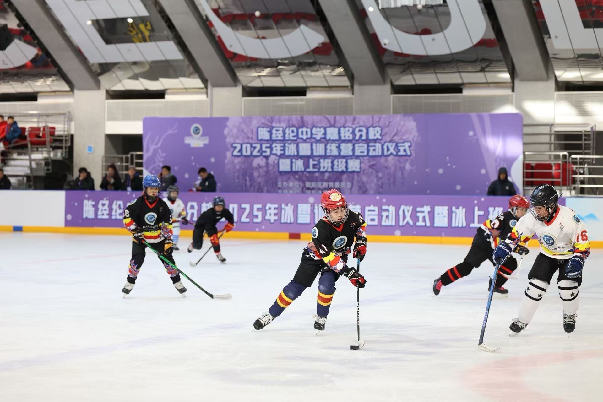陈经纶中学嘉铭分校近年来持续开展冰雪项目教学与训练。据介绍,学校冰球队在2025年北京市中小学生校际冰球比赛中获得甲组冠军,并多次在全国赛事中夺冠;短道速滑队连续六年夺得朝阳区团体第一名;花样滑冰队作为区代表队,连续两年进入全国花样滑冰大奖赛前六名;冰壶队屡创佳绩,蝉联中国中学生冰壶比赛冠军。这四大社团已培养出多名国家一级、二级运动员。