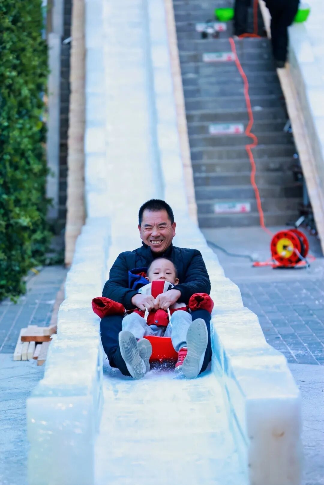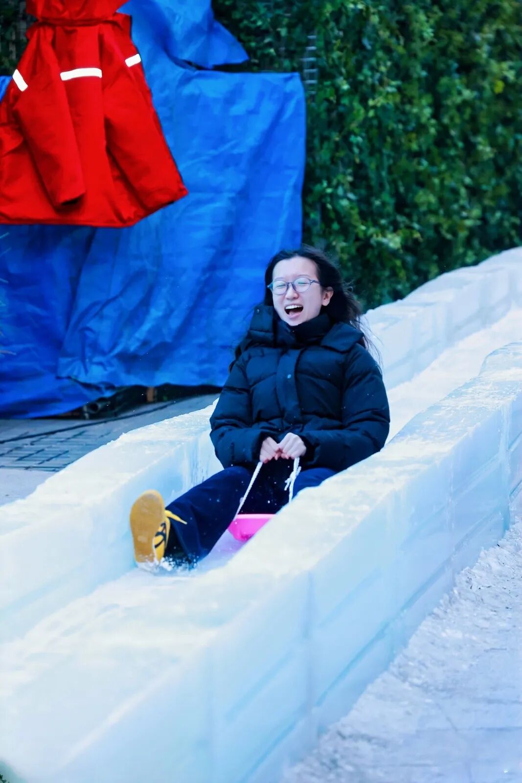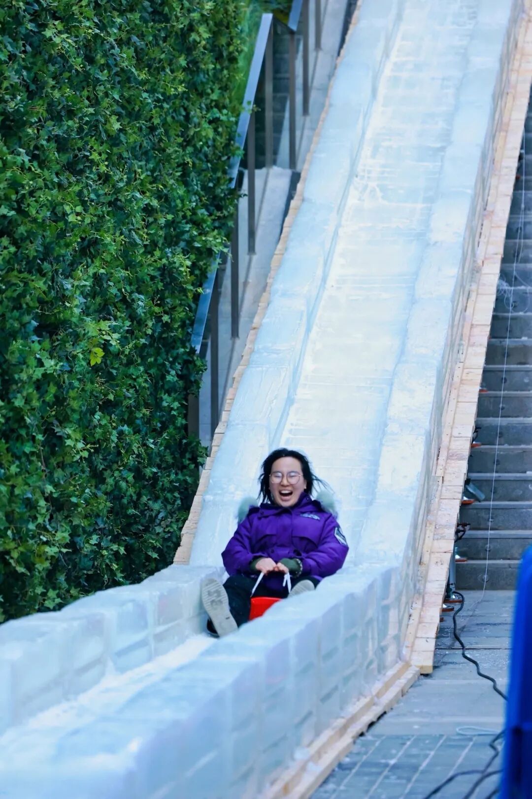 这座40米超长双轨冰滑梯正式开放