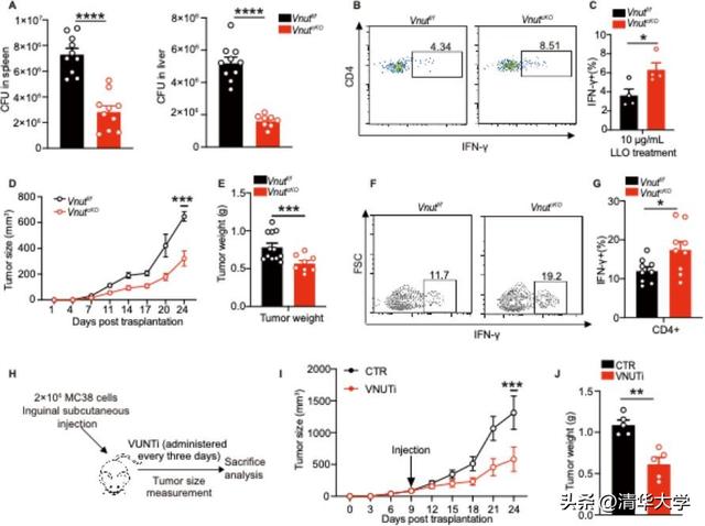 图2.Vnut敲除增强抗细菌和抗肿瘤免疫