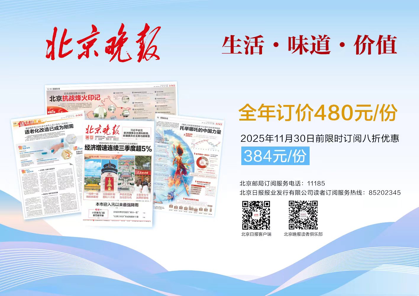 调整后,本报将采用全彩印刷,字号从9磅放大至10磅。这一变化是为积极响应读者的实际需求,切实提升阅读体验。内容建设上,持续聚焦民生关切,深耕读者喜闻乐见的晚报特色,既捕捉胡同街巷的民生温度,又传递大城发展的时代脉动,倾力打造深读耐看的精品内容。在保留“大城之变”“探展”“邻里周刊”“五色土”等经典版块的同时,新设“新知天下”“流金”“养老大调研”等特色版面。
