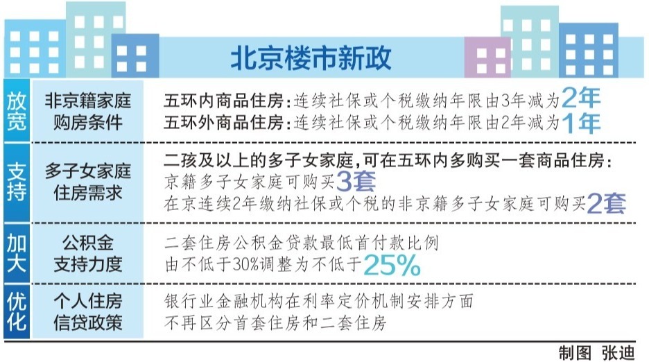非京籍家庭购房条件再次放宽