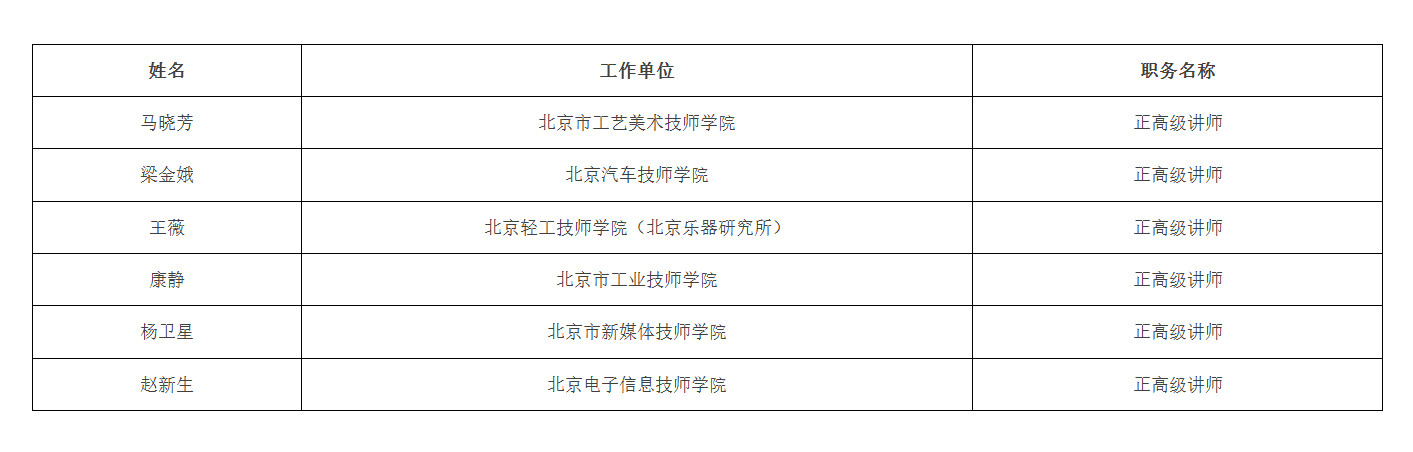 北京市技工院校教师系列正高级专业技术职务评审委员会于2025年12月5日召开会议,马晓芳等6人(名单附后)通过了正高级专业技术职务任职资格评审。根据《北京市职称评审管理暂行办法》(京人社事业发〔2020〕12号)的规定,经复核,现予以公示。