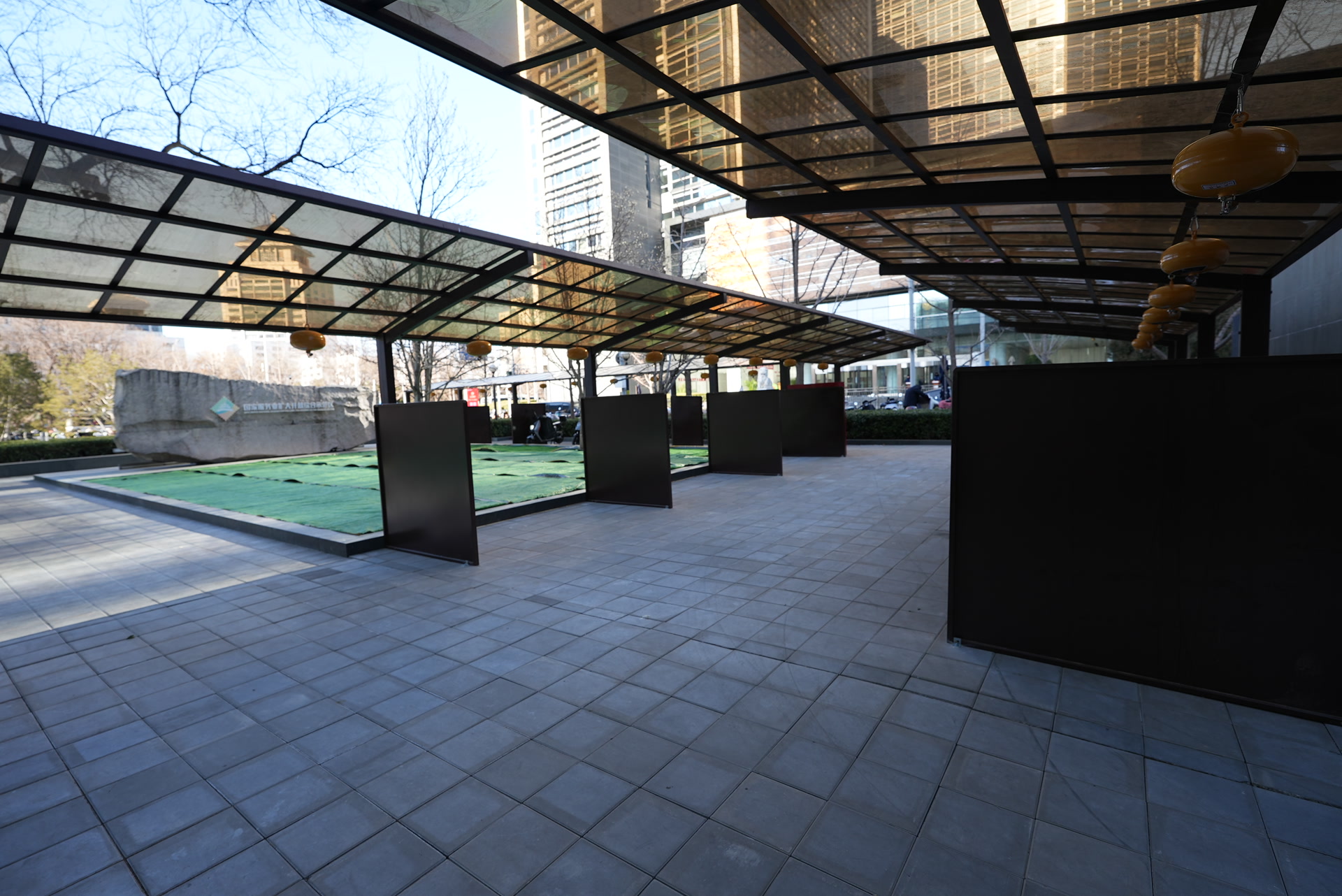 国寿物业管理有限公司中国人寿中心项目总经理杜荣胜介绍,中国人寿中心北侧原是一处小广场,除了绿化外,没有其他设施。虽然这是一片公共活动空间,但其产权所属并非“公有”,而是属于9家业主,“建设集中车棚需要9家业主一致同意。”