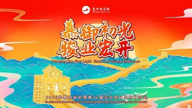 “活动以‘慕御初光 骏业宏开’为主题,意蕴深远,‘慕御初光’寄托了人们对新年第一缕阳光的向往,寓意光明与希望的全新开始;‘骏业宏开’则蕴含着事业昌隆、前程似锦的美好祝愿。”慕田峪景区相关负责人表示,“慕田峪景区三十二载初心不改,希望以长城为媒,让游客在晨光中感受文化遗产的独特魅力,以昂扬姿态奔赴新年‘骏业’。”