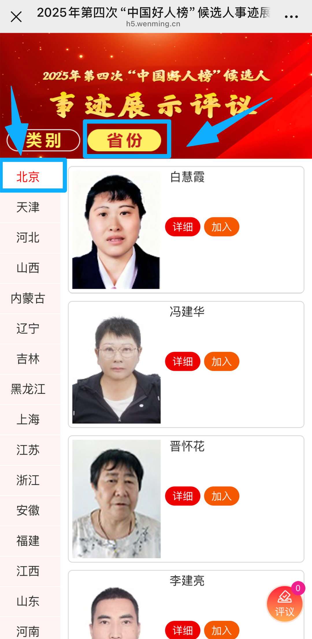 进入“评议中国好人”页面后