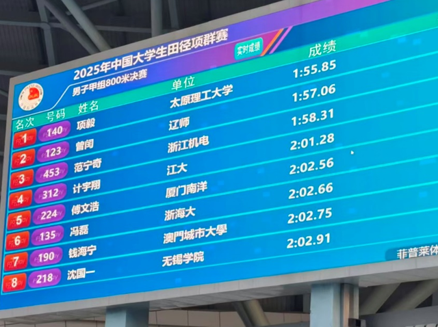 市运会一周后,计宇翔乘胜出击中国大学生田径项群赛。在这里,他与来自全国各地的顶尖选手同场较量。比赛进入最后一圈,当身旁对手突然加速拉开差距,他立刻奋力追赶,目光紧紧锁定前方第三名的背影。距离在弯道与直道间一点点缩短,他拼尽全力直至冲过终点。最终,计宇翔再次突破自我极限,夺得800米甲组全国第四的好成绩,也在一周内再次打破了校最高纪录。