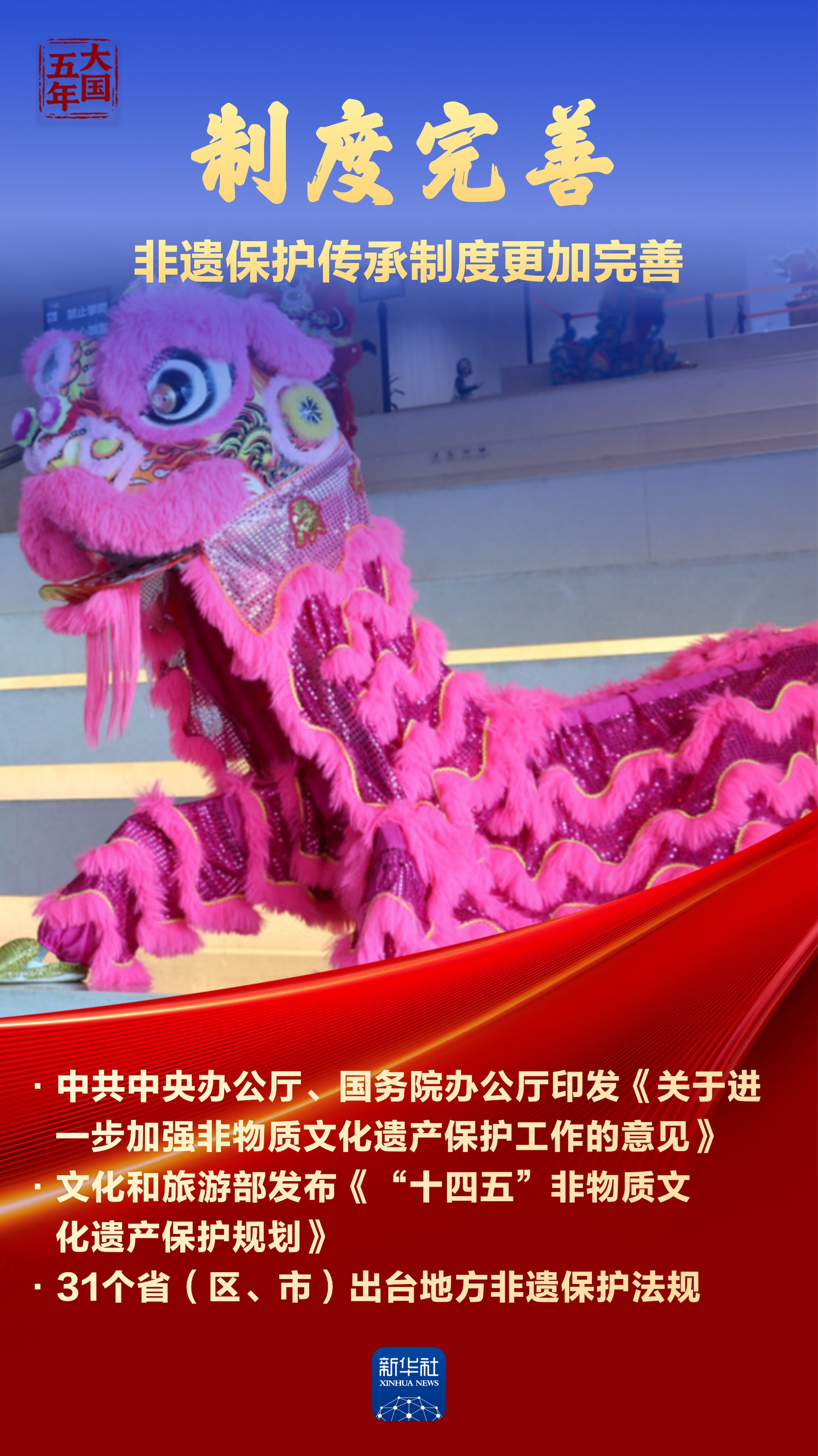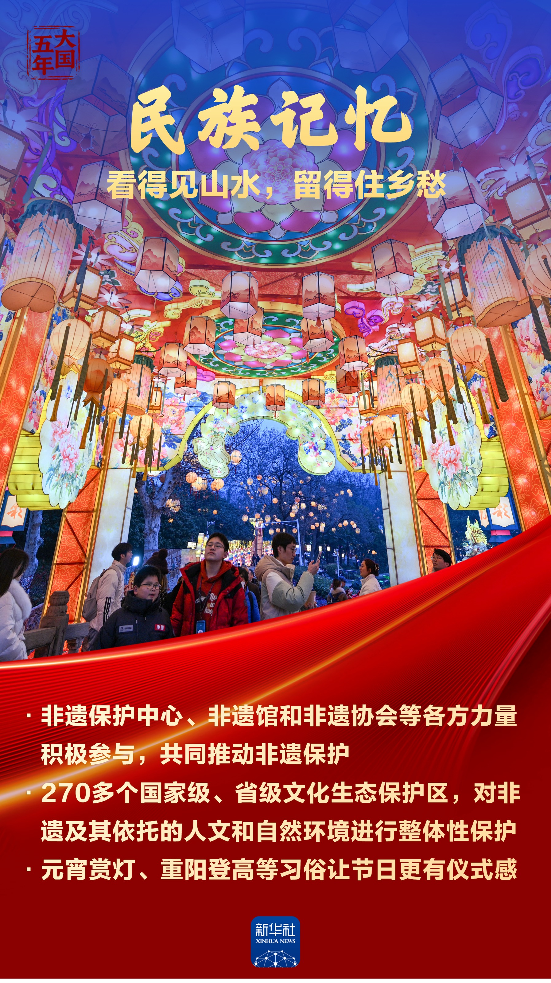 非物质文化遗产是中华优秀传统文化的重要组成部分,是中华文明绵延传承的生动见证。“十四五”时期,我国非遗名录,名册项目世界第一,见证中华民族文明高度;超过1.29万家非遗工坊带动120余万人就业,古老技艺赋能乡村振兴;276个文化生态保护区存续乡土记忆,望得见山水,留得住乡愁。
