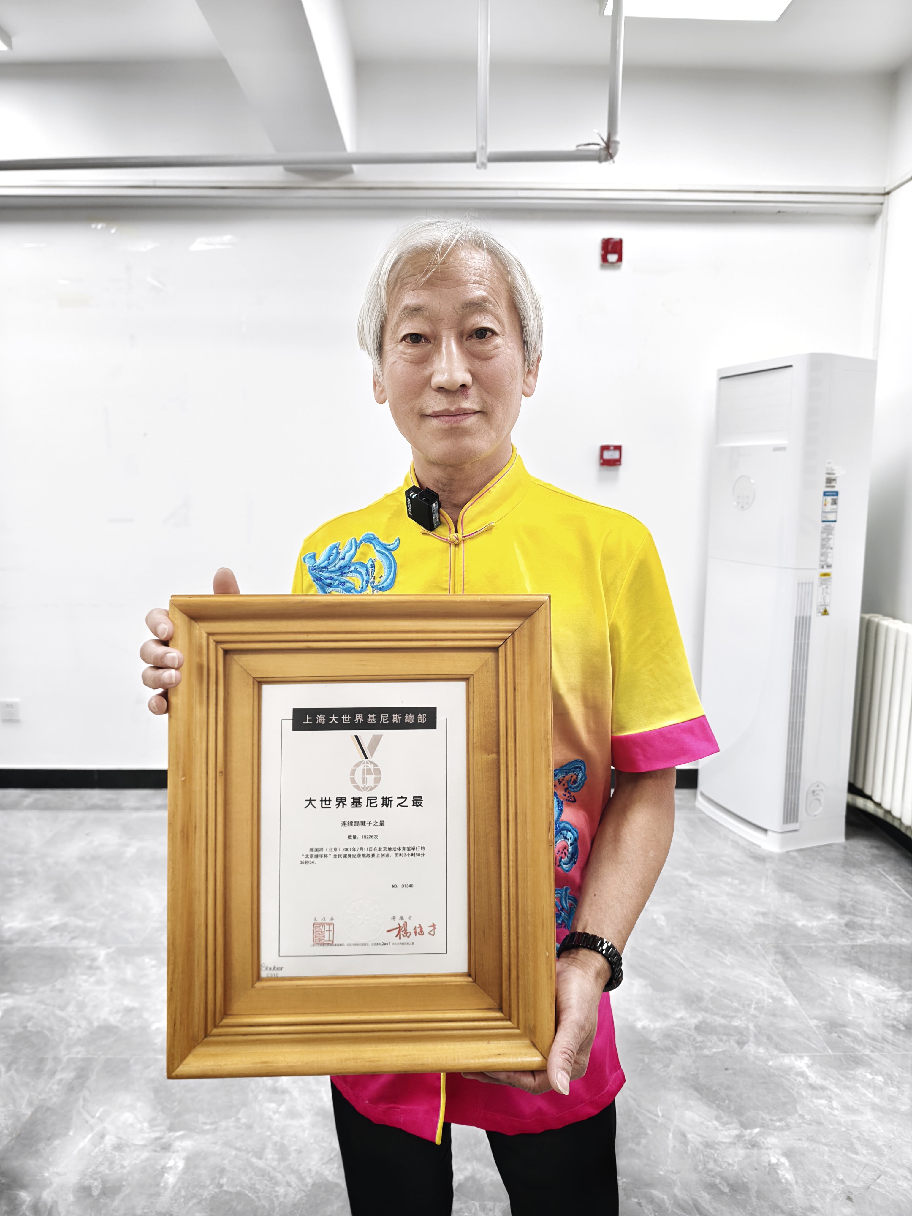 绝活:历时2小时50分38秒34创下连续踢毽15226次的《大世界基尼斯之最》纪录。