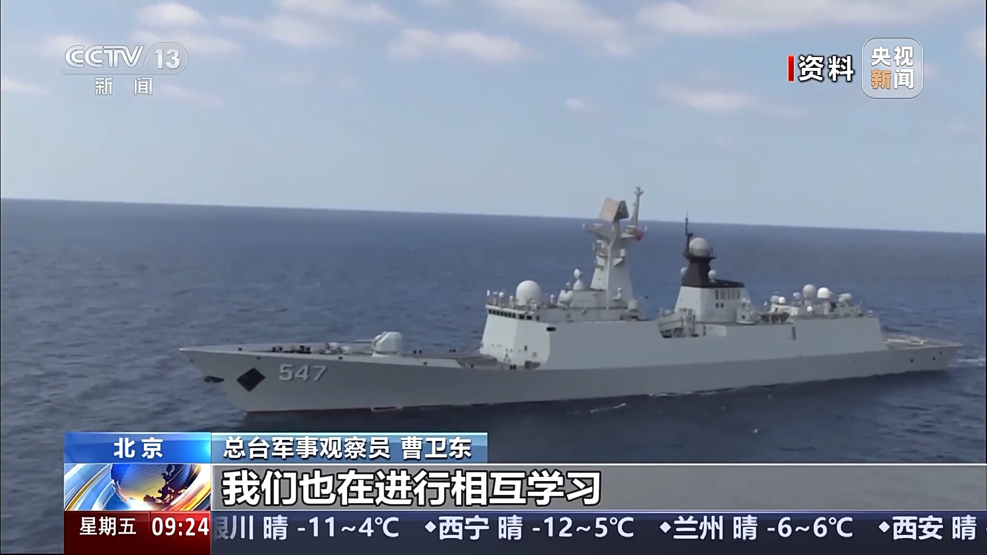 总台军事观察员 曹卫东:我们在这个过程中是与其他国家的军舰或者是编队进行联合的护卫任务,我们也在进行相互学习,就是无论是技术、战术还有合作等,也是对我们人民海军远海能力的一种现实的提升和帮助。