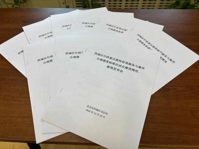 12月23日,西城区司法局召开行政复议接待咨询服务与案件办理服务标准化试点建设情况新闻发布会。这项全国行政复议领域首个且唯一的国家级标准化试点项目,已于今年6月高分通过评估验收,并获评北京市2025年法治政府建设经验创新项目。