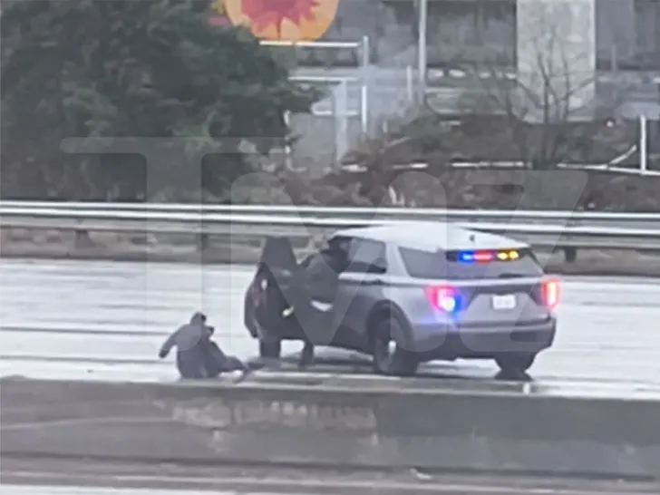 当地时间25日,美国西雅图,一名男子在州际公路上突然靠近警车驾驶侧车门,将一名女警拽出并推倒在地,随后驾车逃离。图源:TMZ