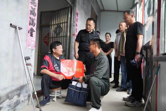 刘健始终牵挂贫困儿童的成长冷暖,今年9月休假期间,主动向滕州市慈善总会捐赠6万元专项助学金。他还逐一走进贫困儿童家中,细致了解他们的学习生活难题,送去生活用品与真挚关怀;更以自身成长经历为蓝本,手写6封饱含期许的书信,鼓励孩子们勇敢面对困境、勤学笃行,用知识铺就人生坦途。归队后,爱心续航不停歇,他利用休息时间赴驻地敬老院,带着水果、牛奶、棉被等物资,陪老人闲话家常,为视力不佳的老人读书读报、解读时事,用真心换真情,让敬老院里洋溢着欢乐与温暖。
