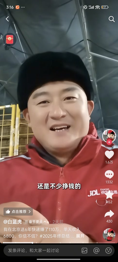 近日,京东快递小哥魏团结在网上晒出6年收入110万的工资,2025年他还获得了北京市劳动模范的荣誉。网友纷纷感慨:“真是360行,行行出状元”“吾辈楷模”。魏团结回应道:“没想到这么多人评论,靠自己挣的钱,不怕说!”他说,送快递不轻松,但只要肯奋斗肯努力,也能闯出一片天。