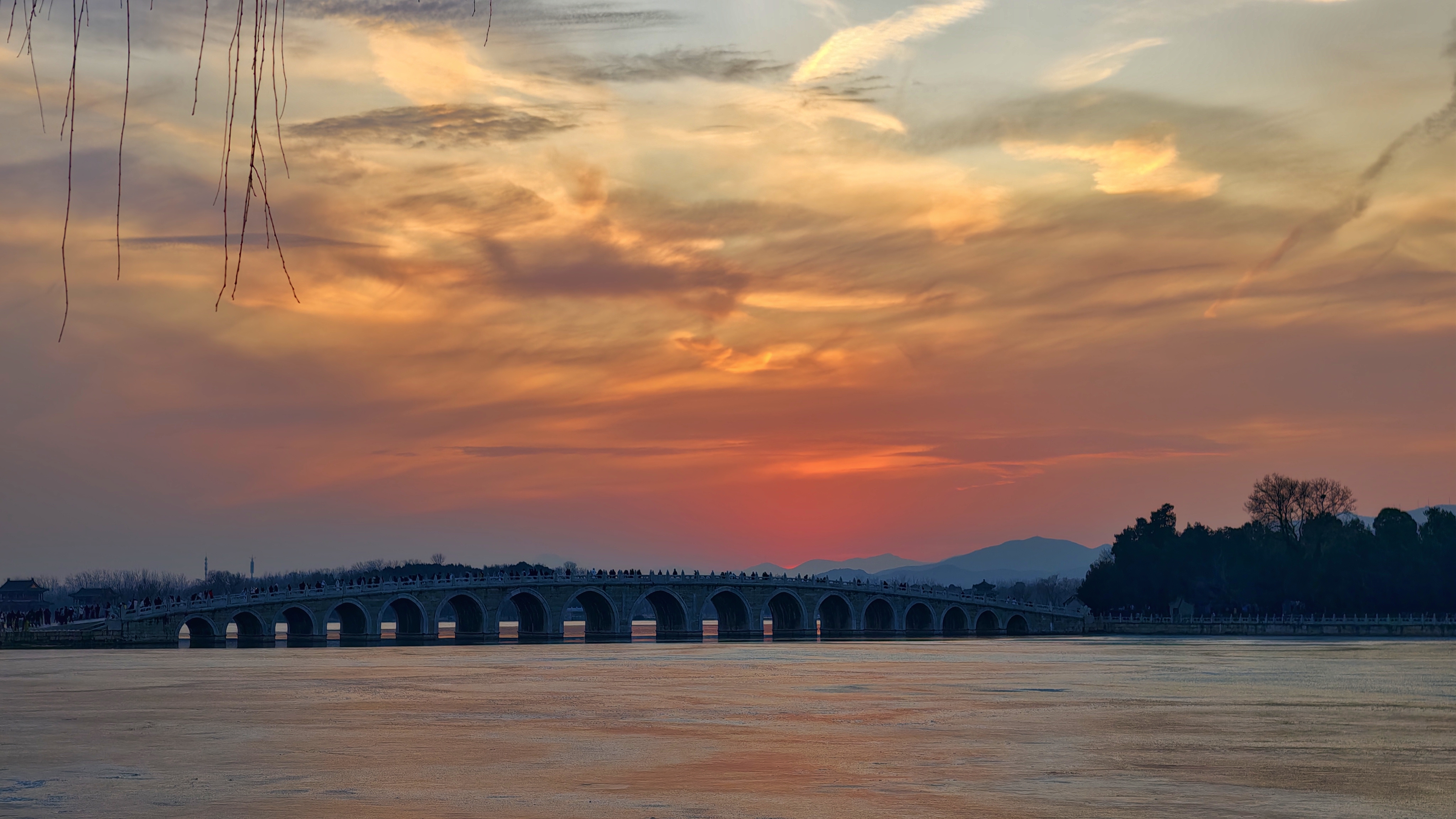 京城即景|霞踱桥,人归家,鸟投林,炊烟升起