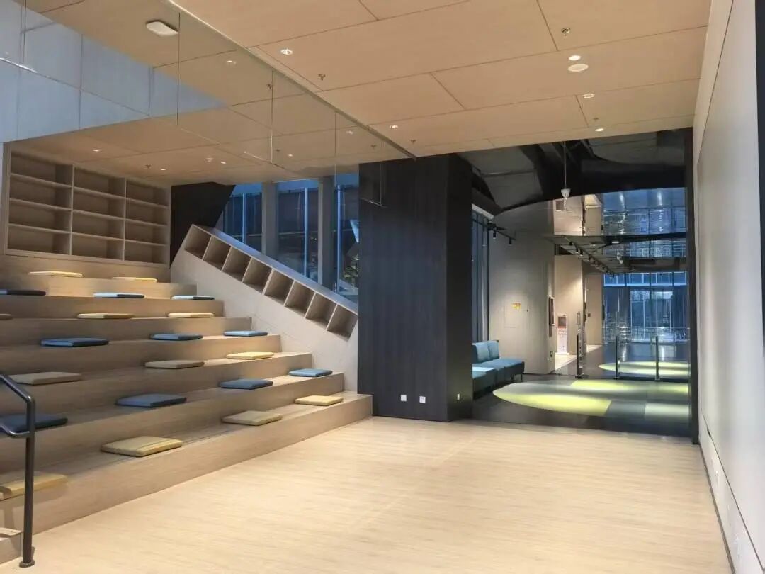 除了静态的阅读区域,动态的特色空间同样吸睛。“跃动空间”舞蹈戏剧工坊,让身体律动带动思维发散;“墨场”展厅则是一个灵活多变的开放场域,未来这里将持续举办艺术展览、科技发布与文化沙龙,成为园区文化活动的核心阵地。
