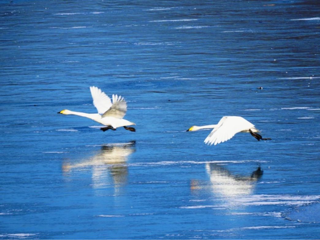 在浅滩和茂密芦苇中,有一群优雅的“精灵”,为这幅水墨画添了些许灵动。详情>>