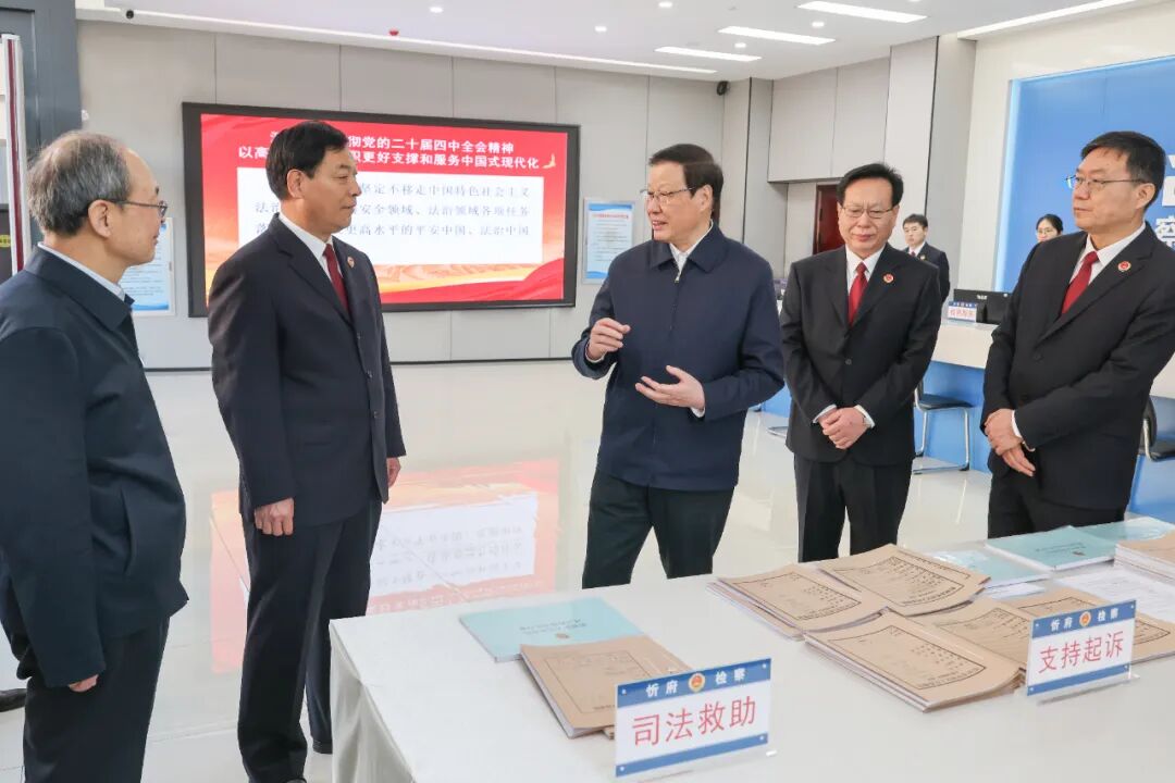 12月25日,最高人民检察院党组书记、检察长应勇率最高检调研组在忻州市忻府区检察院调研。