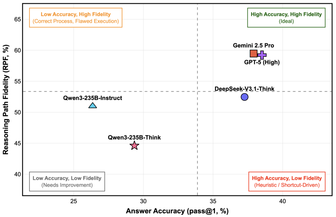 团队发现,AI的推理链条往往断裂于产物结构预测、反应机理识别以及构效关系分析等高阶任务。当前的顶尖模型虽然拥有海量的知识储备,但在处理需要严密逻辑和深刻理解的硬核化学问题时,仍显得力不从心。