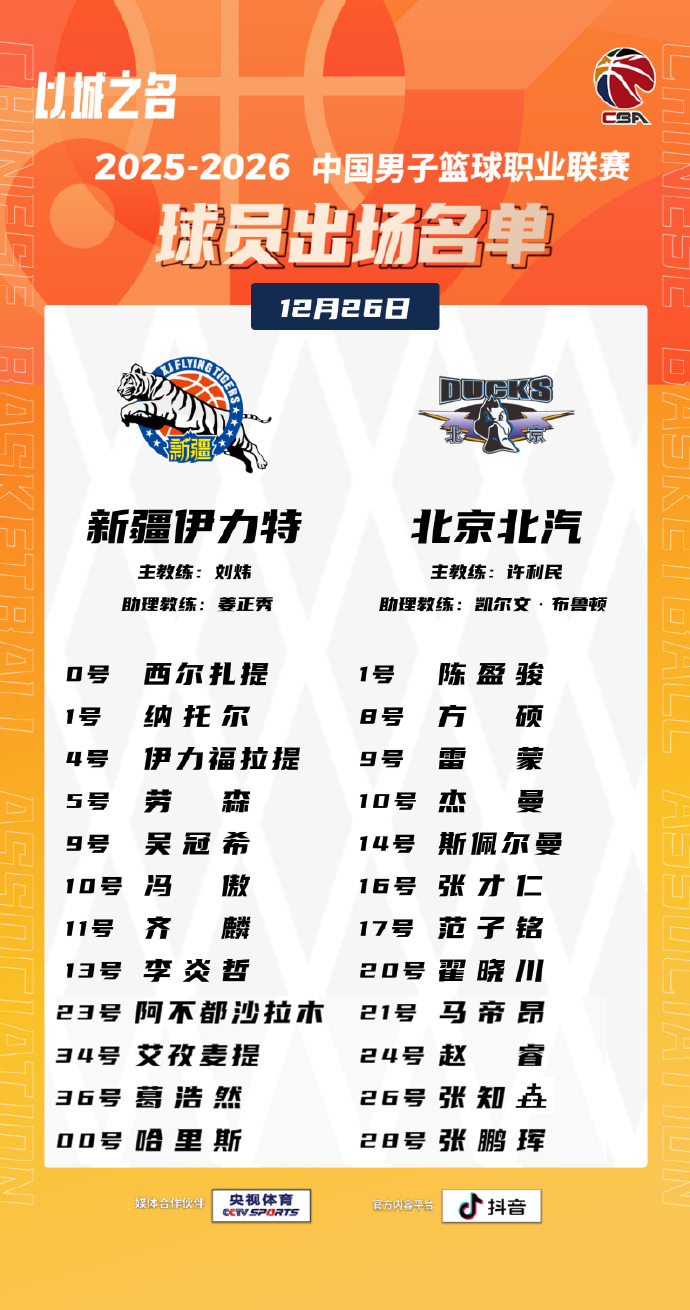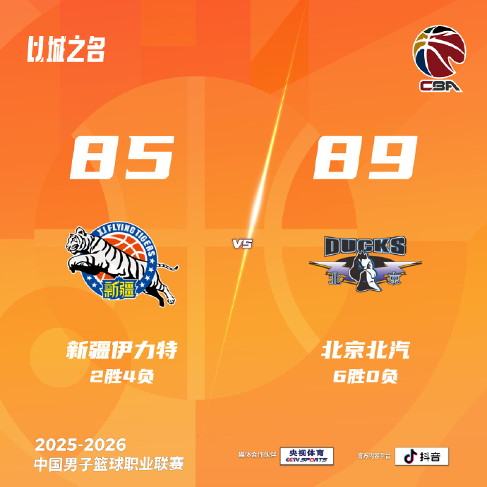 缺少主力中锋周琦,实力打了折扣的北京北汽队还是赢下了比赛。26日,在CBA常规赛第六轮比赛中,北汽队在客场以89比85战胜新疆队,本赛季常规赛“双杀”对手。