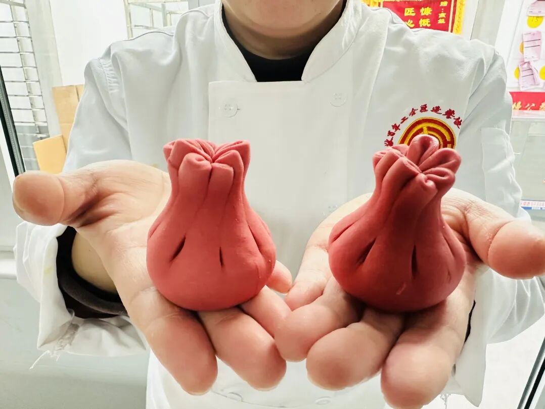 花馍鲜亮的色彩也让大家格外放心,工坊坚决杜绝添加剂色素,所有颜色都源于天然食材——黄色取自南瓜,绿色来自菠菜泥,咖啡色则由可可粉调制而成。更让人安心的是,工坊员工每周工作餐,至少有五顿都会吃自家做的花饽饽,这份“自己不吃就不卖”的坚守,正是匠人匠心的最好体现。