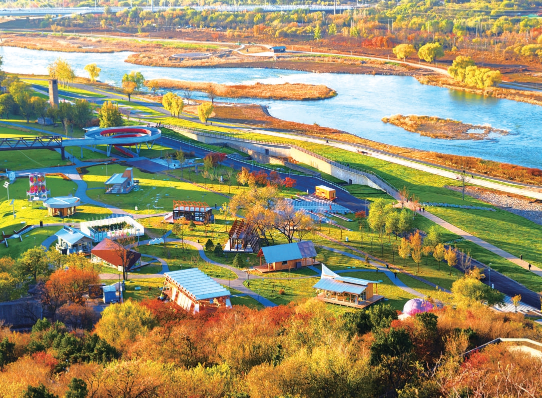 望西山、观湿地、看日落、品美食,2025年9月,永定河集正式亮相。宽阔的大草坪、充满创意的店铺、高耸的首钢滑雪大跳台,不仅串联起一片活力共融的水岸空间,也成为石景山区推进京西转型和“两园一河”协同联动发展的标志性成果。
