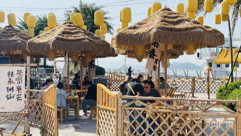 在“海上世界”的户外平台,赏海景品好茶成为市民游客热衷的滨海消费新场景(央广网记者 吴馨骅 摄)