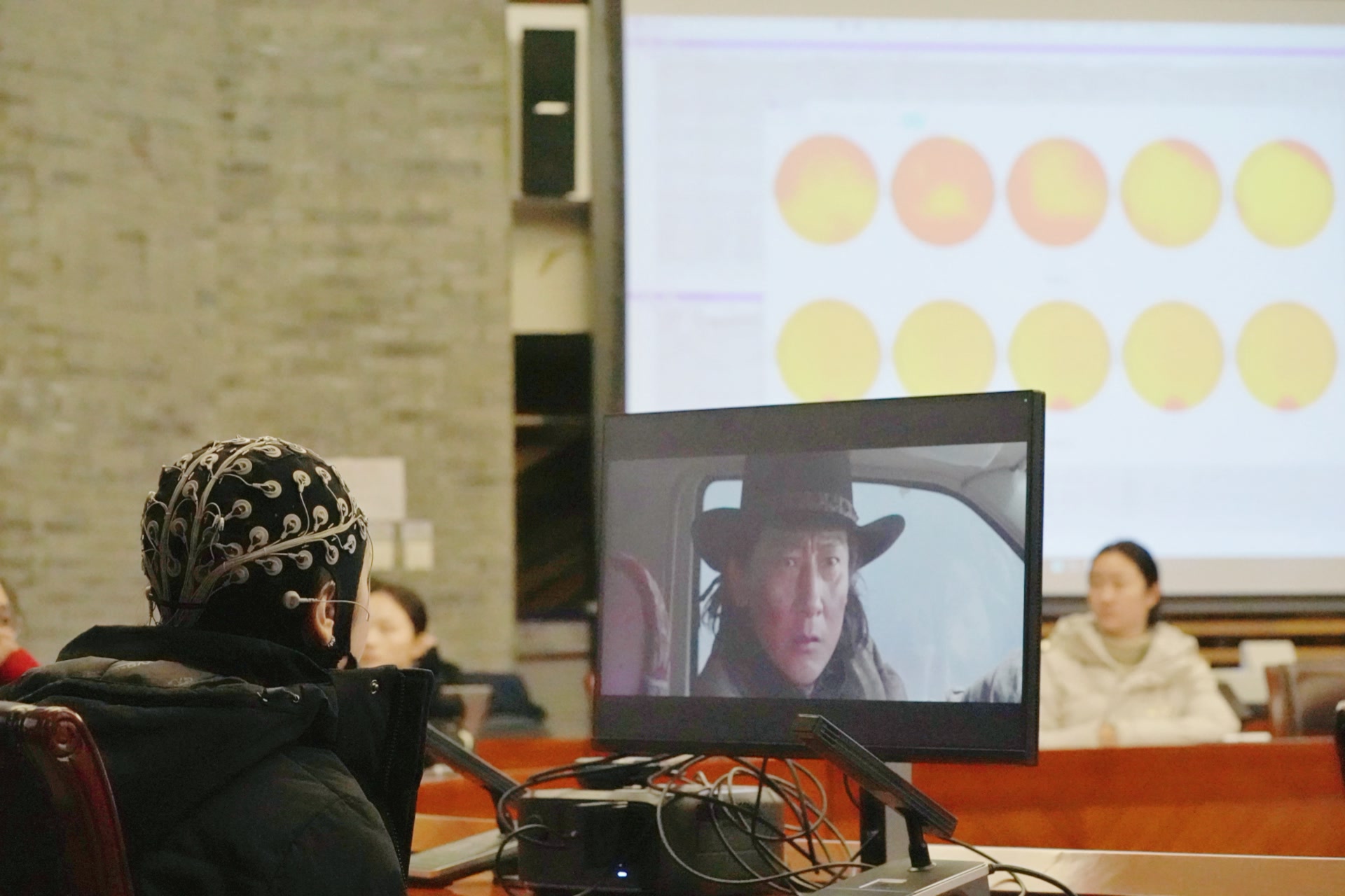 “屏幕上展示的是前额叶皮层的实时神经活动。这是情绪调节的核心脑区。”实验室博士研究生李泽轩解读,“当强烈情感表达的片段播出时,脑地形图出现了显著的改变,前额区域变化尤其强烈。这是大脑在说,‘我被打动了,我正在产生共情’。”