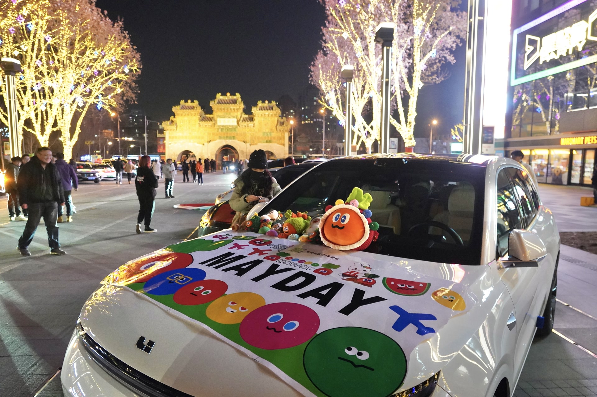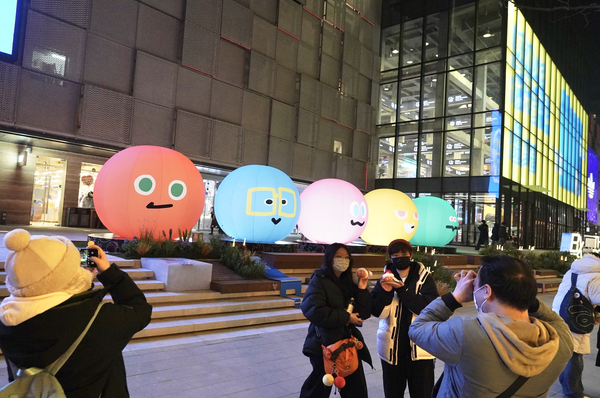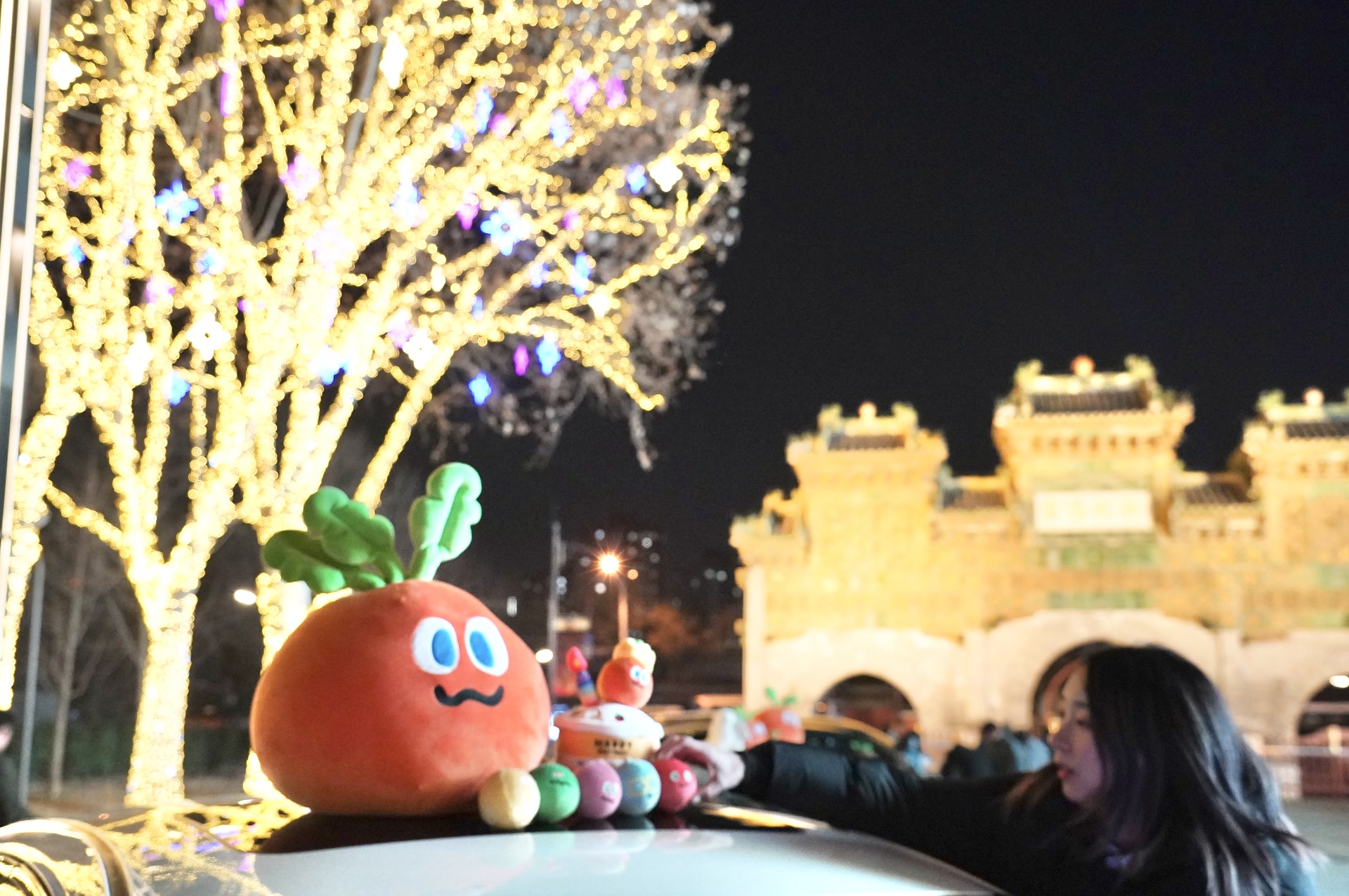 尽管天气寒冷,但朝外UIC街区洋溢着节日氛围。这里像一座没有穹顶的开放式艺术馆,光影装置点缀街区,连大树也穿上了彩色毛衣。