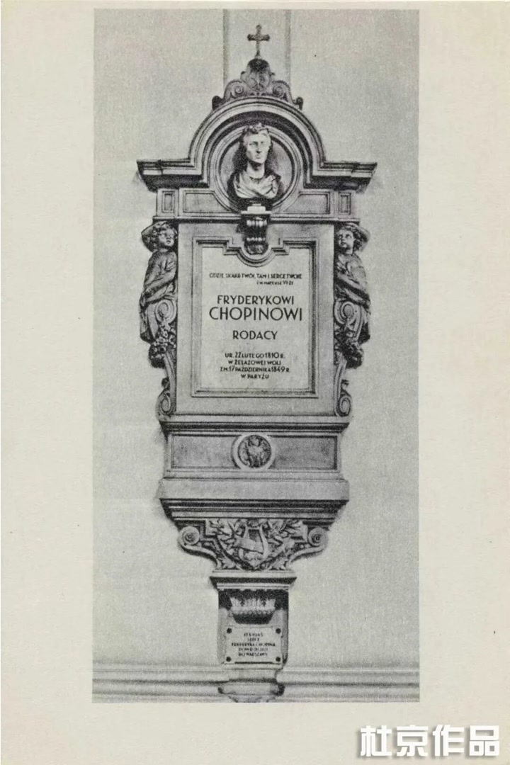 时光穿越二十年,老去的路德维卡将弟弟的心脏带回祖国,安放在华沙圣十字教堂,水晶盒被嵌入石柱,饰以碑面,上有肖邦雕像。1944年,二战方酣,水晶盒被转移他处,免于毁失。战后,波兰总统取回水晶盒,持之绕行肖邦故居,随后放回圣十字教堂石柱。七十年后,因有朽坏之虞,肖邦研究院于2014年将水晶盒取出查看,居然完好如初。时有美国科学家建议化验并以高科技保护,以便久长,但波兰人坚持守其原样,水晶盒再度嵌回柱子,一如既往。