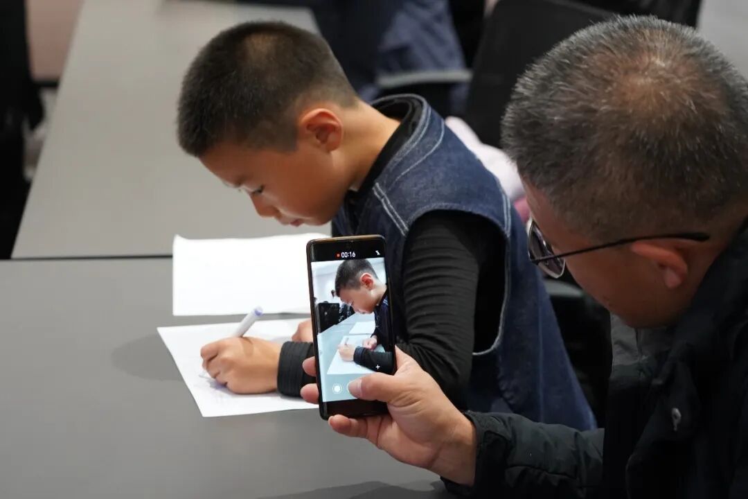他身后的互动屏幕上,正展示着《说文解字教本》的部首系统。一位年轻父亲带着儿子轻触“水”部,“江”“河”“湖”“海”如流水般在屏幕上涌现。“爸爸你看!”小男孩兴奋地指着屏幕,“这些字都和水有关!”