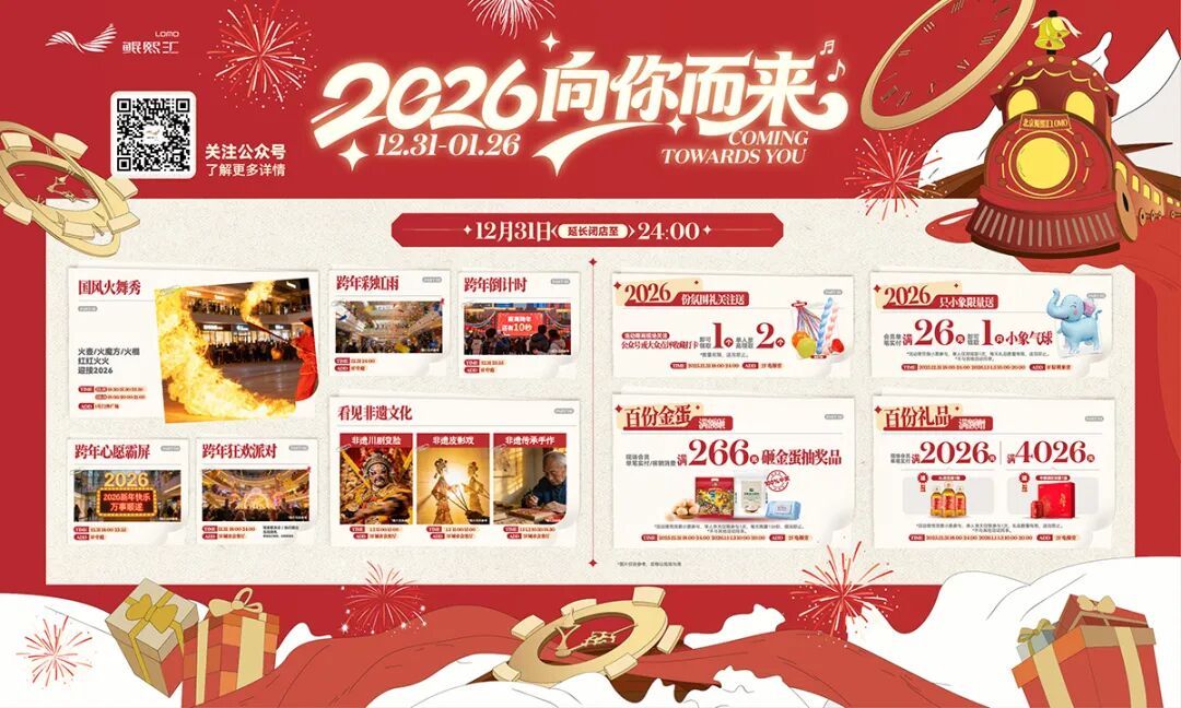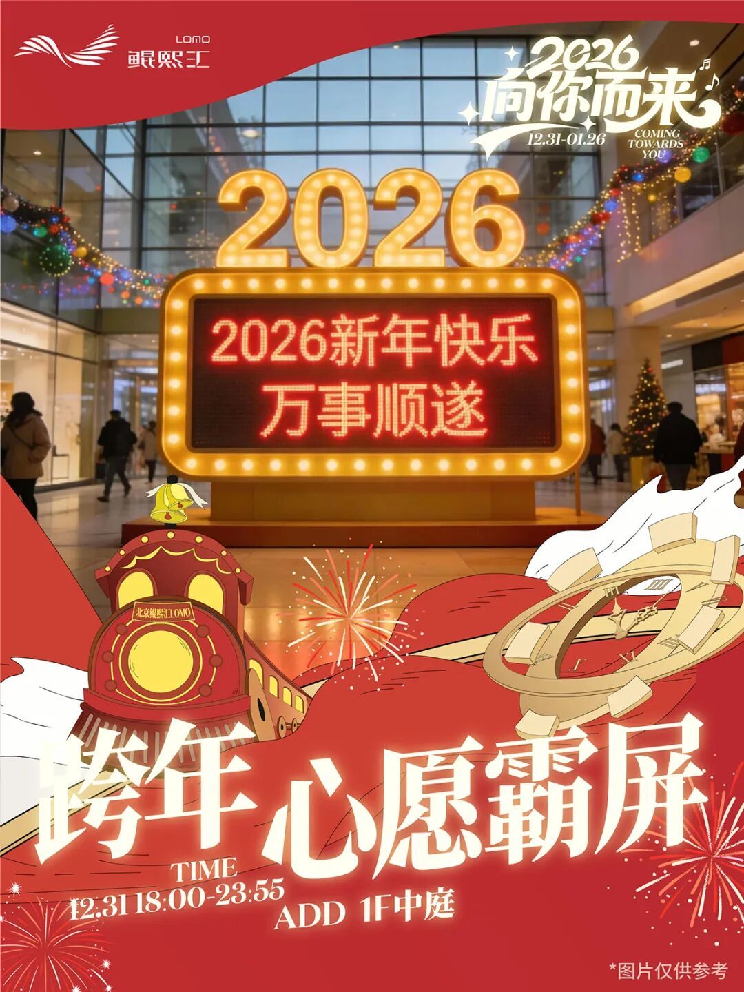 北京鲲熙汇LOMO重磅推出“2026,向你而来”跨年主题活动,12月31日延长闭店至24:00,跨年夜狂欢、元旦文化盛宴、四重超值福利轮番登场,为市民打造一场集潮流互动、文化体验与购物优惠于一体的新年盛会,邀你共赴岁末年初的美好之约。