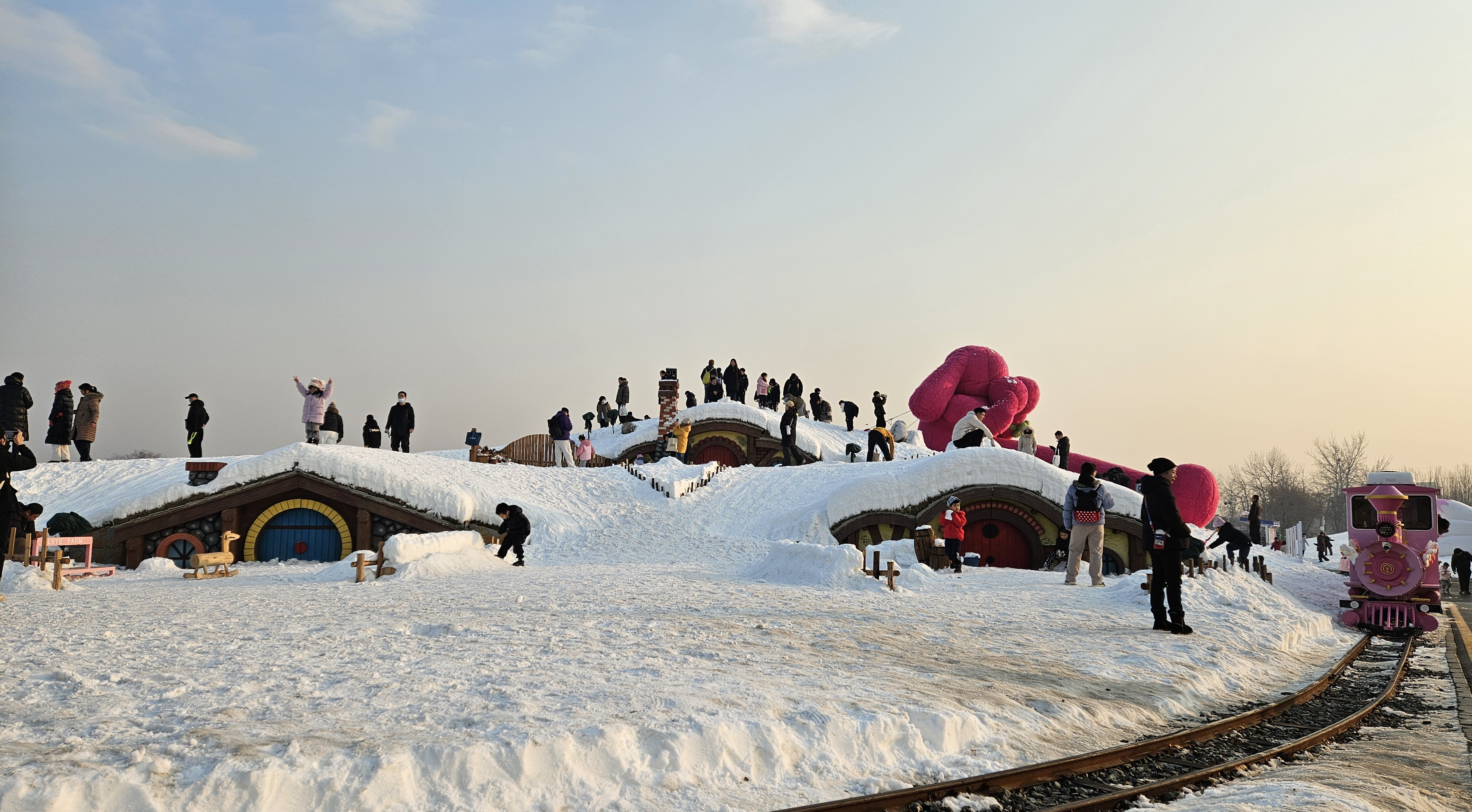 走进乐园,仿佛闯入奇幻冰雪世界:害羞兔IP呆萌伫立,雪裹松枝环绕的霍比特小屋藏着冬日惊喜,灵动的雪地九尾狐IP与彩色热气球相映成趣,每处打卡点随手就能拍出冬日大片。