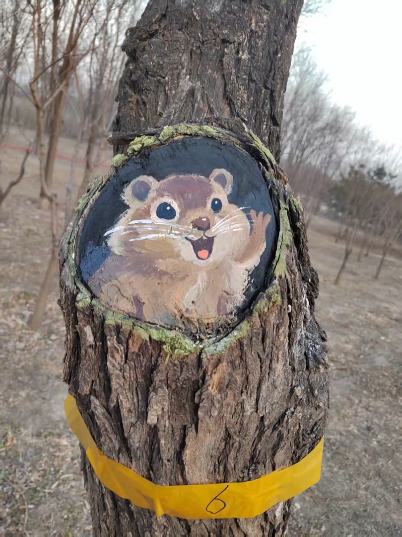 12月27日至28日,“树洞里的生命——遇见南森小伙伴”主题彩绘活动在这里举行,30余棵老树树洞“住进”小动物,为冬日的公园注入一抹活泼生机。