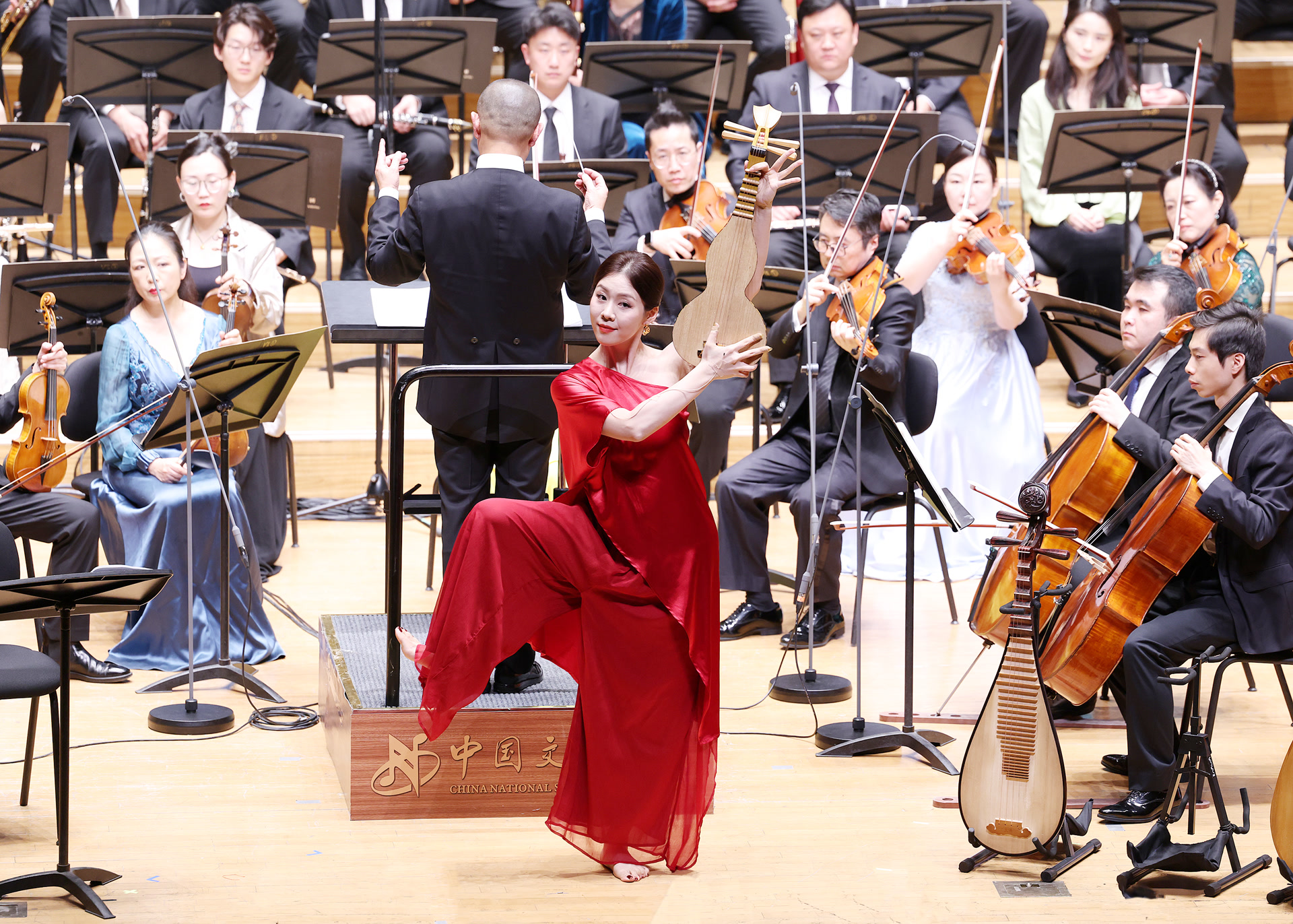 下半场,音乐会的气氛持续高走。琵琶演奏家韩妍带现代琵琶、敦煌反弹琵琶和五弦琵琶上台,在谭盾《三种琵琶与乐队协奏曲》中酣畅回溯盛唐风光,第二段乐舞“莫高泉”中,韩妍更是边弹边舞,若飞天复现;马头琴演奏家哈斯巴根继续把音乐之旅引向广袤草原,谭盾《马头琴协奏曲》穿梭于古代与现代元素之间,桀骜深邃地引出自然与人类的亘古对话;接续上演的巴托克《罗马尼亚民间舞曲》、拉威尔《波莱罗舞曲》地域与节庆色彩并重,它们紧接返场作品《1812序曲》《风与鸟的密语》,为整场演出圆满作结。