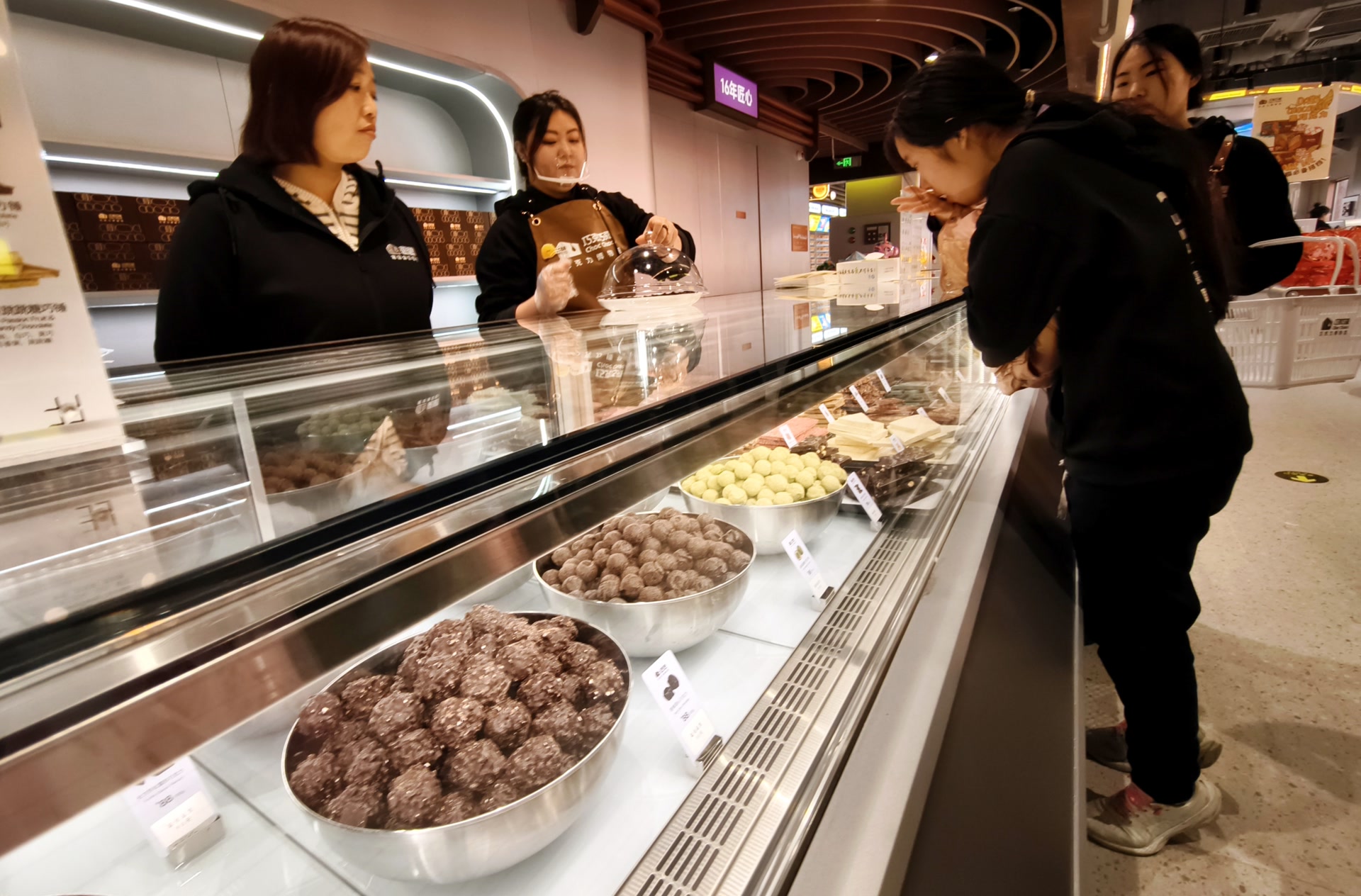 作为巧克力博物馆二层的甜蜜“终点”,380平方米的巧克力零售区汇集了经典零食、精致礼盒等百款全品类产品,更陈列着糖葫芦、屋脊兽、故宫、天坛、长城等以北京文化为主题的创意巧克力。