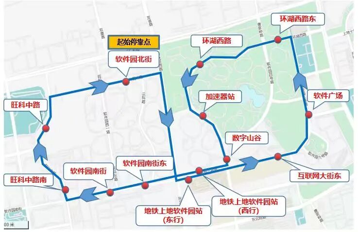 此次试运行开通的微循环线路采用顺时针环线行驶,首末站为软件园北街。线路全长7公里,共设13站,途经中关村软件园一期、二期,接驳地铁18号线上地软件园站,前往一期的乘客可在地铁上地软件园站(东行)乘车,前往二期的乘客可在地铁上地软件园站(西行)乘车,有效满足周边产业园区的通勤需求。