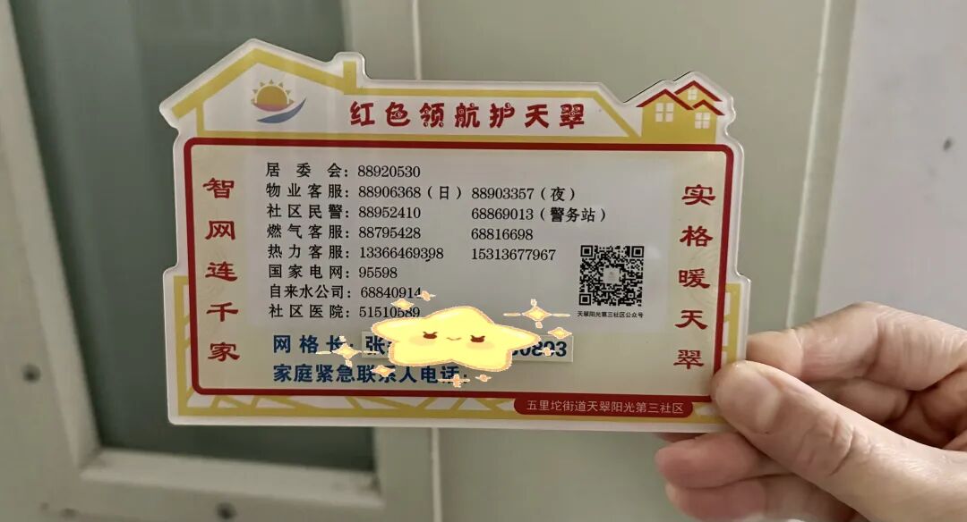 经过几轮讨论,最终冰箱贴脱颖而出。“几乎每家每户都有冰箱,冰箱贴的各种文创也十分受欢迎,不如就把便民信息做成冰箱贴,方便大家随时查看。”社区工作人员说,磁吸的设计除了冰箱,还能放在金属防盗门上,找起来方便。巴掌大的一个冰箱贴,不仅有居委会、物业、社区医院等各个机构电话,根据网格划分贴上了网格长联系方式,还留出家庭紧急联系人电话,方便居民自行填写。