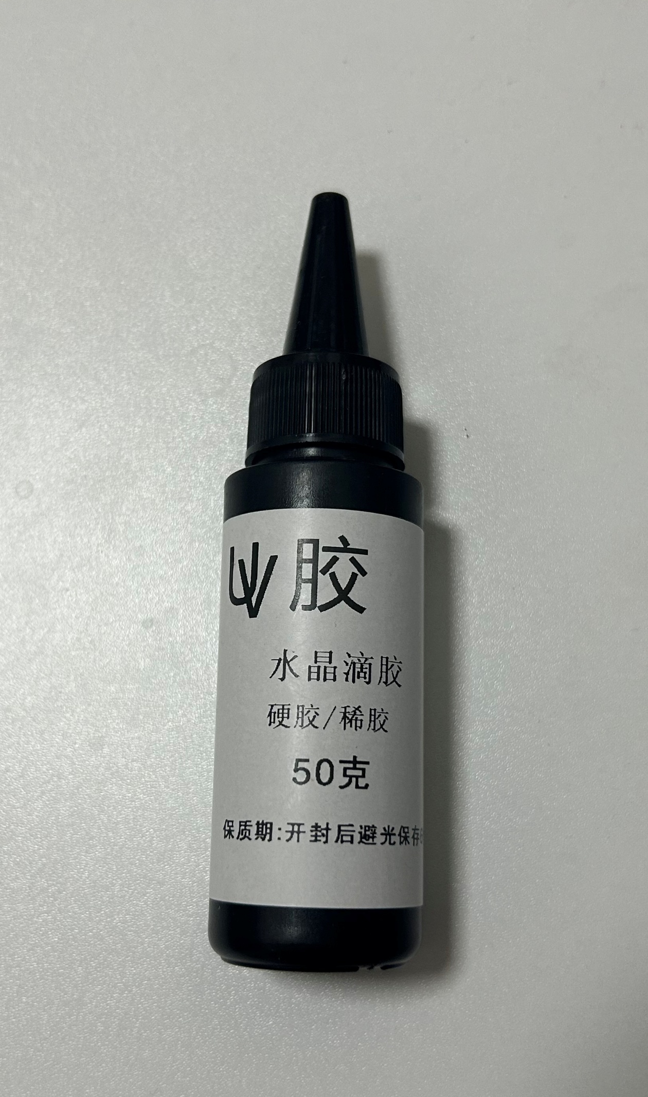 这些胶水原料的价格并不算贵,记者也在不同网店购买了一些小剂量的产品。如果说缺少检测报告只是小问题,等拿到实物之后,记者才发现,有的产品问题更大。胶水的瓶身上只写了“UV胶,水晶滴胶50克,保质期:开封后避光保存6个月”,除此之外,没有任何的生产厂家、生产日期等信息,妥妥的“三无”产品。