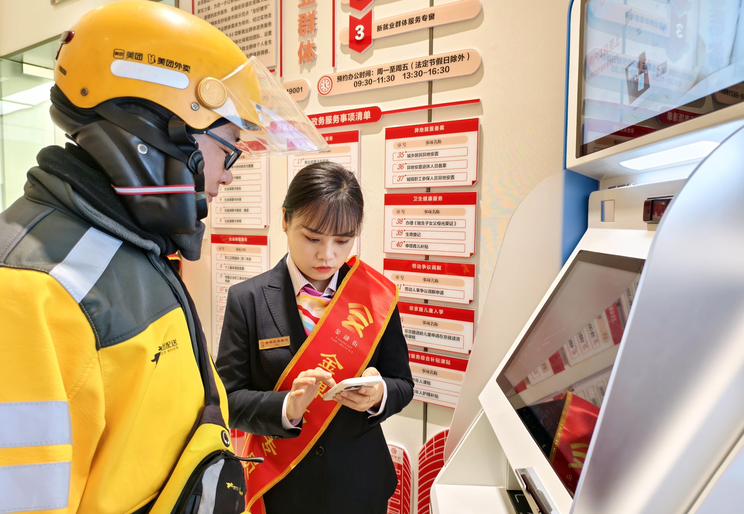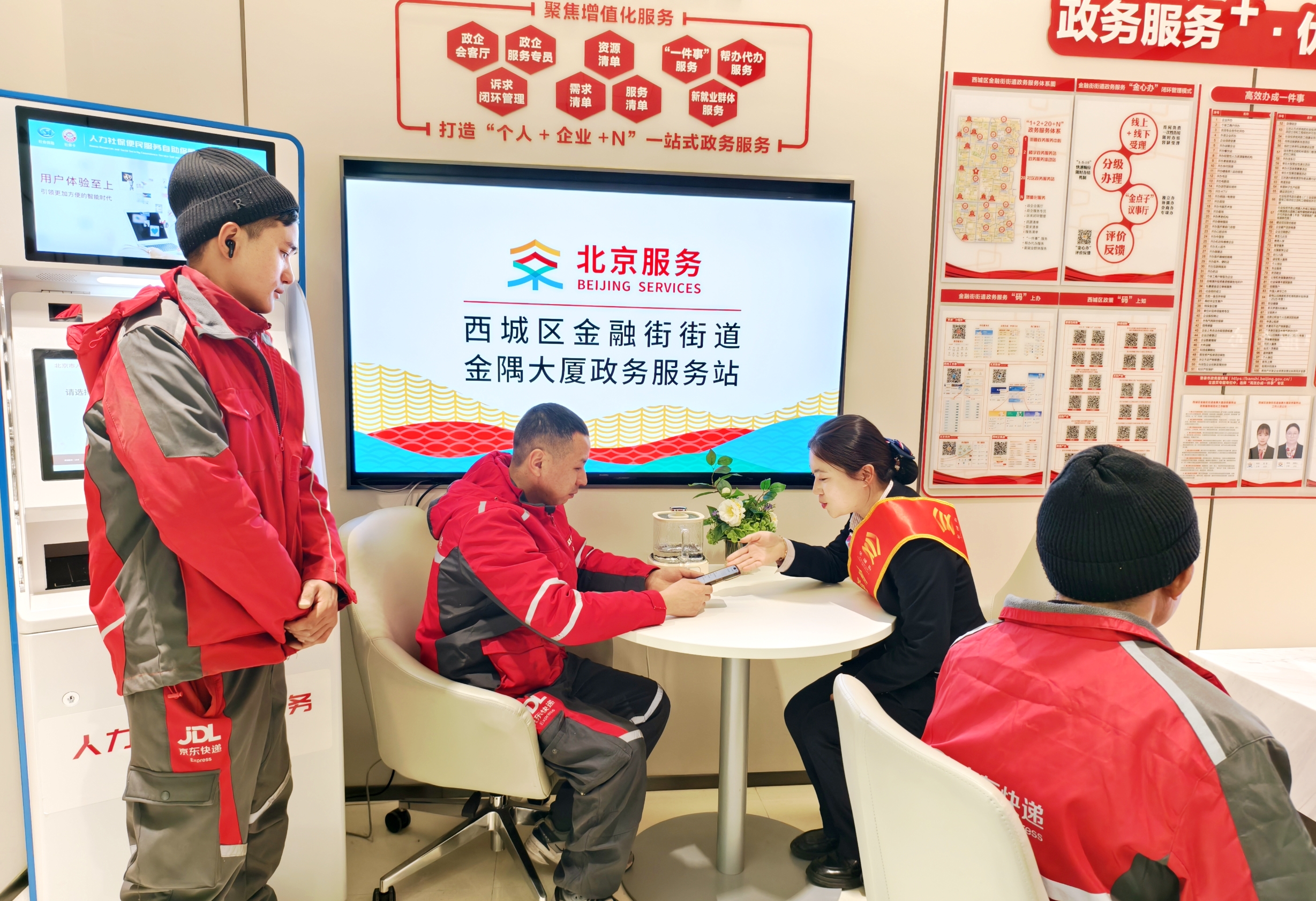 该服务站依托金隅大厦市级示范点“友好楼宇”基础,针对快递员、外卖骑手等新就业群体,梳理出9大类44项专属服务清单,组建“社保规划团队”、开设“城市响应人”专窗,覆盖职业发展与生活保障全维度需求。