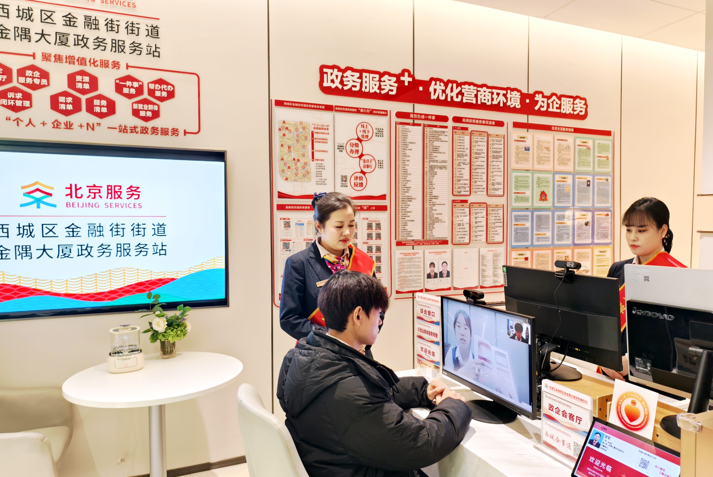 立足金融街企业集聚特点,服务站创新推出“政企专员+楼宇专员”双服务模式,为企业提供从入驻到发展的全程跟踪服务。站内增设视频专席,可与西城区政务服务中心“企业小管家”实时连线,实现咨询、受理、审核“零跑动”。