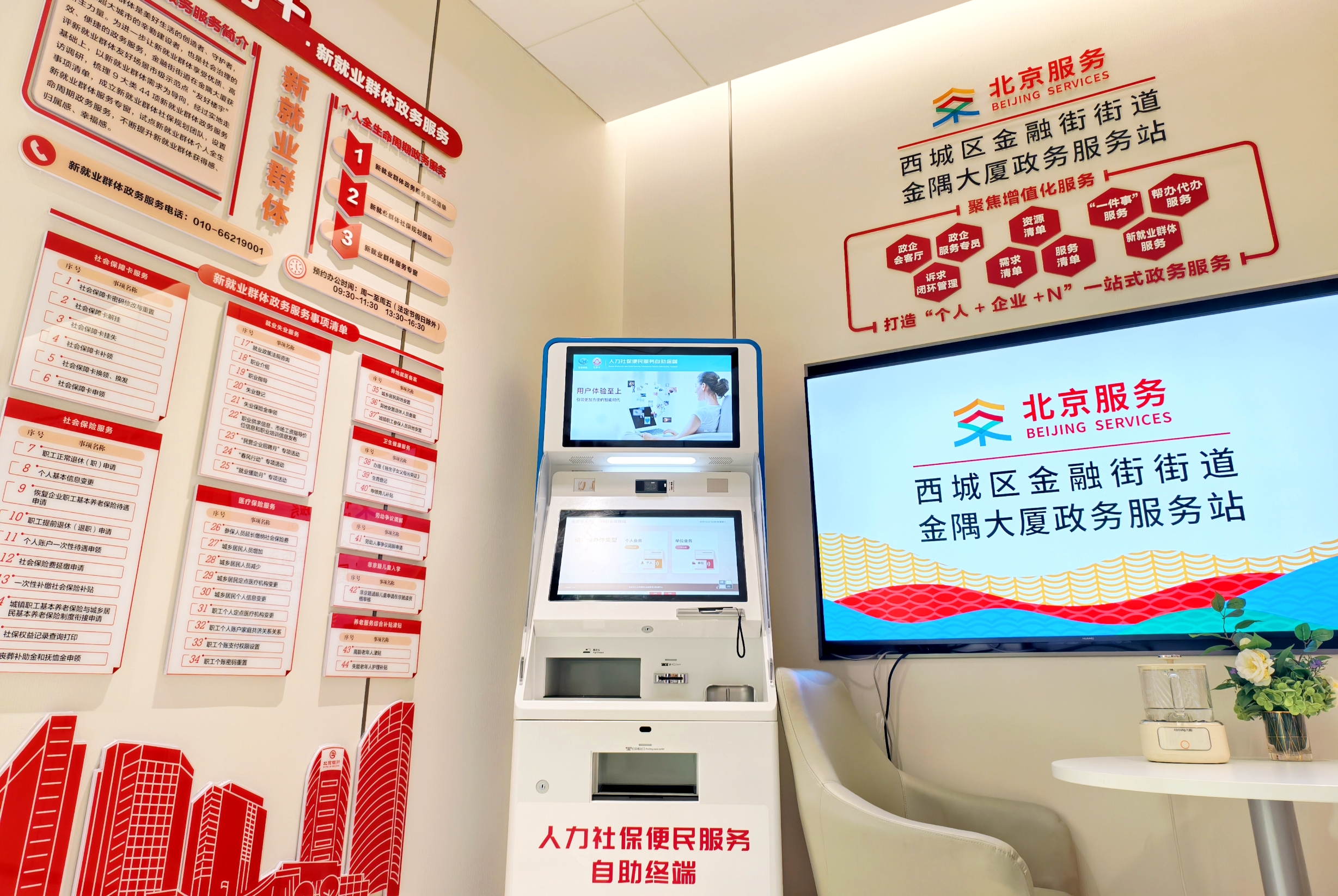 此外,服务站升级“码上办”“码上知”功能,集成政务入口、动态更新政策图解;集约4大类24项高频对公人社业务,配备自助服务终端,让企业足不出楼即可办事。同步整合的“企业100问”“在京生活服务指南”等掌上查询工具,也为企业及员工提供了全天候便利。