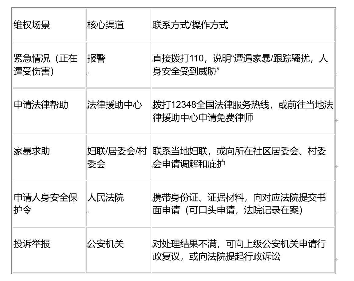 无论是骚扰跟踪还是家暴,维权的核心是“固定证据”和“找对维权渠道”,以下要点必须牢记: