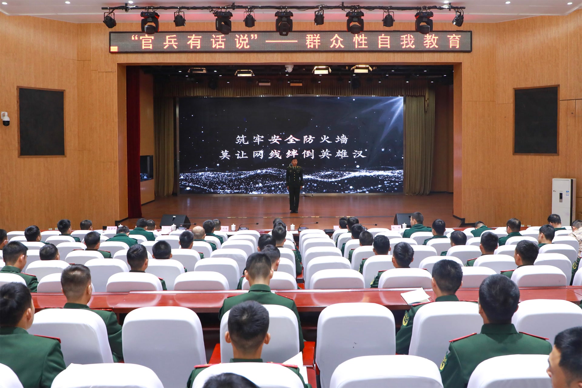 “网络,是什么?它是瞭望世界的窗口,是联通亲友的纽带,是赋能学习娱乐的平台。但它又是什么?它更可能是披着温情外衣的陷阱,是藏于暗处的窥视之眼,甚至是直刺人心的无形利刃……”活动现场,基层理论骨干紧扣“网络安全”主题,以官兵日常手机使用、网络冲浪等鲜活场景为切入点,围绕“账外机使用、失泄密隐患、乱交往风险、网赌网贷危害”四个方面,采取“视频+宣讲”的教育模式,将安全用网的大道理转化为接地气的“兵言兵语”。