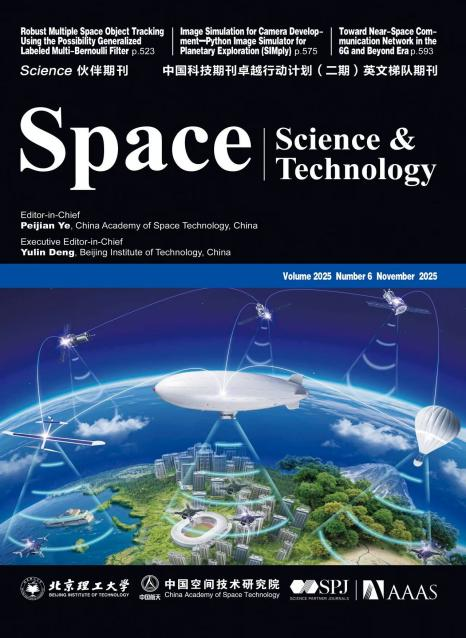 《空间科学与技术(英文)》创办于2021年1月,由中国科学院院士、中国空间技术研究院顾问叶培建研究员担任主编,北京理工大学邓玉林教授担任执行主编,已被SCIE、EI、Scopus、中国科技核心期刊等数据库收录,并入选中国科技期刊卓越行动计划二期英文梯队期刊、2024年度“首都科技期刊卓越行动计划”重点英文科技期刊支持项目、2025年度支持北京市高水平国际科技期刊建设储备项目(强刊提升)。2025年6月,在科睿唯安公布的2024JCR报告中IF为6.8,位居Engineering, Aerospace学科全球第3(3/55)。中科院分区大类物理与天体物理一区TOP,小类天文与天体物理、工程:宇航一区。
