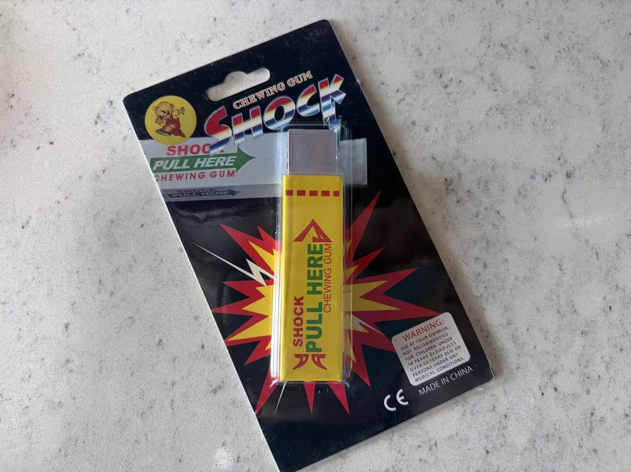 除了线下市场,一些通过网络销售的“整蛊玩具”同样问题突出。记者看到,一款销量超1万单的“整蛊口香糖”玩具,宣传语写着“你敢拉,我敢电”,却未对产品电压及适用年龄做出任何提示。记者下单收到商品后,发现仅装在一个简陋的快递袋内,玩具本身只有一个全英文包装,没有任何中文厂名、厂址及合格证明。