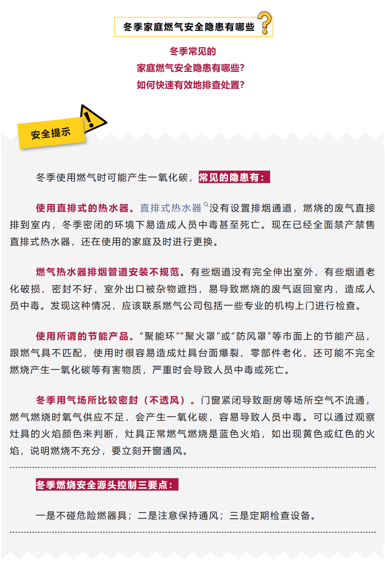 根据气候预测,今年冬季我国气温冷暖起伏显著,寒潮等强降温事件频繁,加之临近岁末年初用火、用电、用气进入高峰,安全风险明显加大,取暖器选购需要注意什么?一氧化碳中毒如何防范?家庭要检查哪些消防隐患?