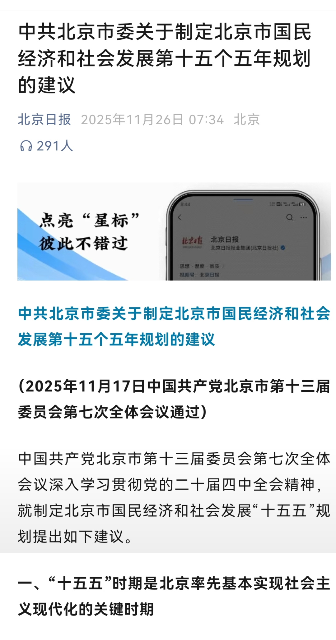 近期,中国共产党北京市第十三届委员会第七次全体会议审议通过《中共北京市委关于制定北京市国民经济和社会发展第十五个五年规划的建议》。